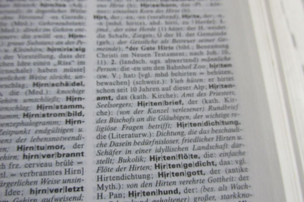 Tässä kuvassa, joka on sanakirjan Duden-sivulta, on näkyvissä der Gute Hirte ja suomeksi tuo käsite tarkoittaa uskonnosta tuttua käsitettä Hyvä Paimen. Hyväksi paimeneksi sanotaan Jeesusta ja usein myös hyvää papin virassa olevaa henkilöä.
