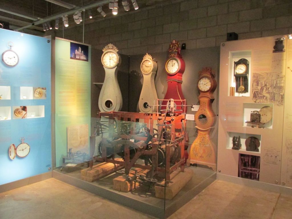 Kuva: Kellomuseon näyttelyssä olevia kaappikelloja vuonna 2019. Valokuva: Tarja Kaltiomaa
