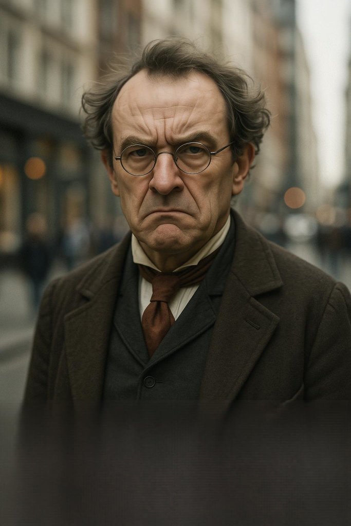 Kuvassa tekoälyn (MS Capilot) luoma nykyaikainen dickensiläinen mies. Miehen nimeksi voisi laittaa Jack Russel-Virtala. Nimessä on sekä englantilaisuutta että hieman suomalaisuutta. Kuva: MS Capilot.
